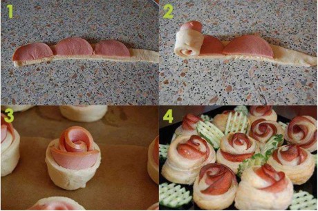 Syrovo-šunkové žemličky z lístkového cesta ( Obrazový návod )